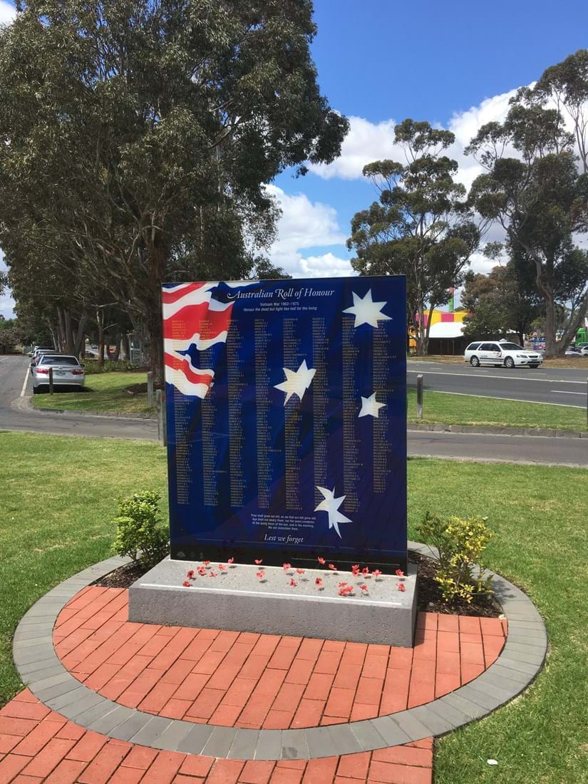 Design and extension of the existing World war 1, World war 2 and extended war memorial to cohesively compliment the material and design intent of the remembrance glass art panel from the original at the Vietnam veterans commemorative service wall Seymour. The Australian remembrance glass art panels honours the 426 Australian service personal killed in action.
