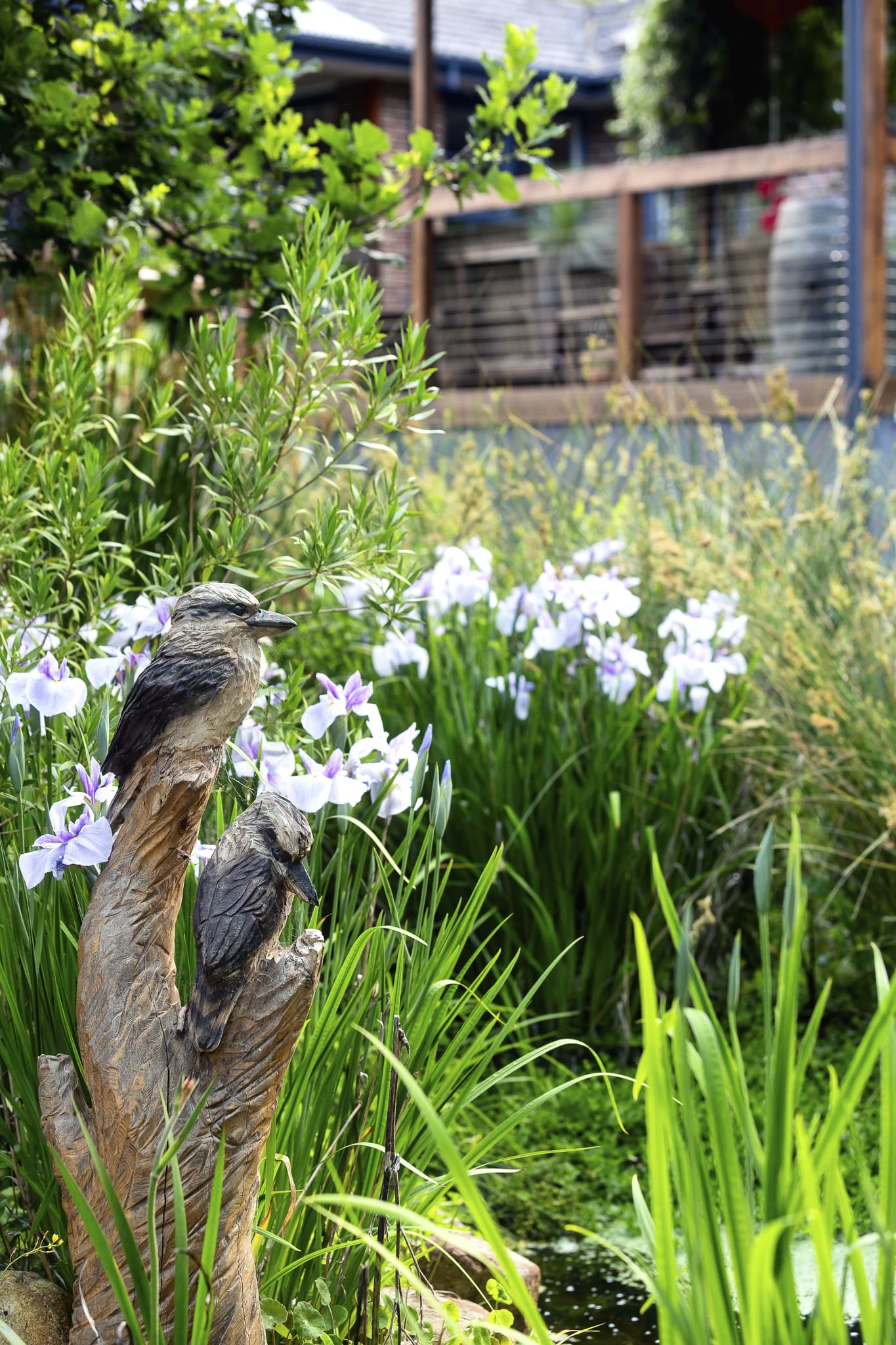 The Kookaburra wooden sculpture provides a visual focal point and character to the space. Real Kookaburras use the sculpture as a resting place sitting on top of the tallest Kookaburra piece.