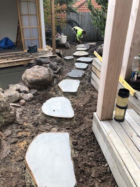 This garden was an uninteresting backyard with a few trees and shrubs and a couchy grass lawn. Which has now been transformed into to a water garden oasis complete with Japanese tea house over hanging a water cascading Australian billabong. Complete with aquatic plants ,fish and ornamental sculptures the garden has transverse into its only little eco system.