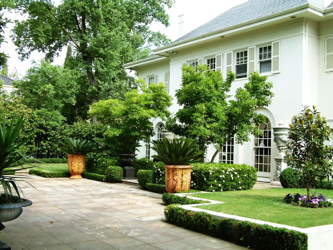 This green theme garden holds a stately presence with a strong emphases on winter and spring flowering periods. Sandstone paving creates a formalized and soft appeal with earthen color units advocating the garden rooms.