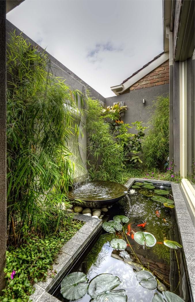 Water gardens bring soothing sounds and distinctive plants to the garden. Fish, frogs, turtles, and beneficial insects are right at home in a water garden. Ponds, fountains, and waterfalls are all at home in a residential garden and are often a point of conversation. Infinitely customisable, these features can be large or small, intricate or simple in design.